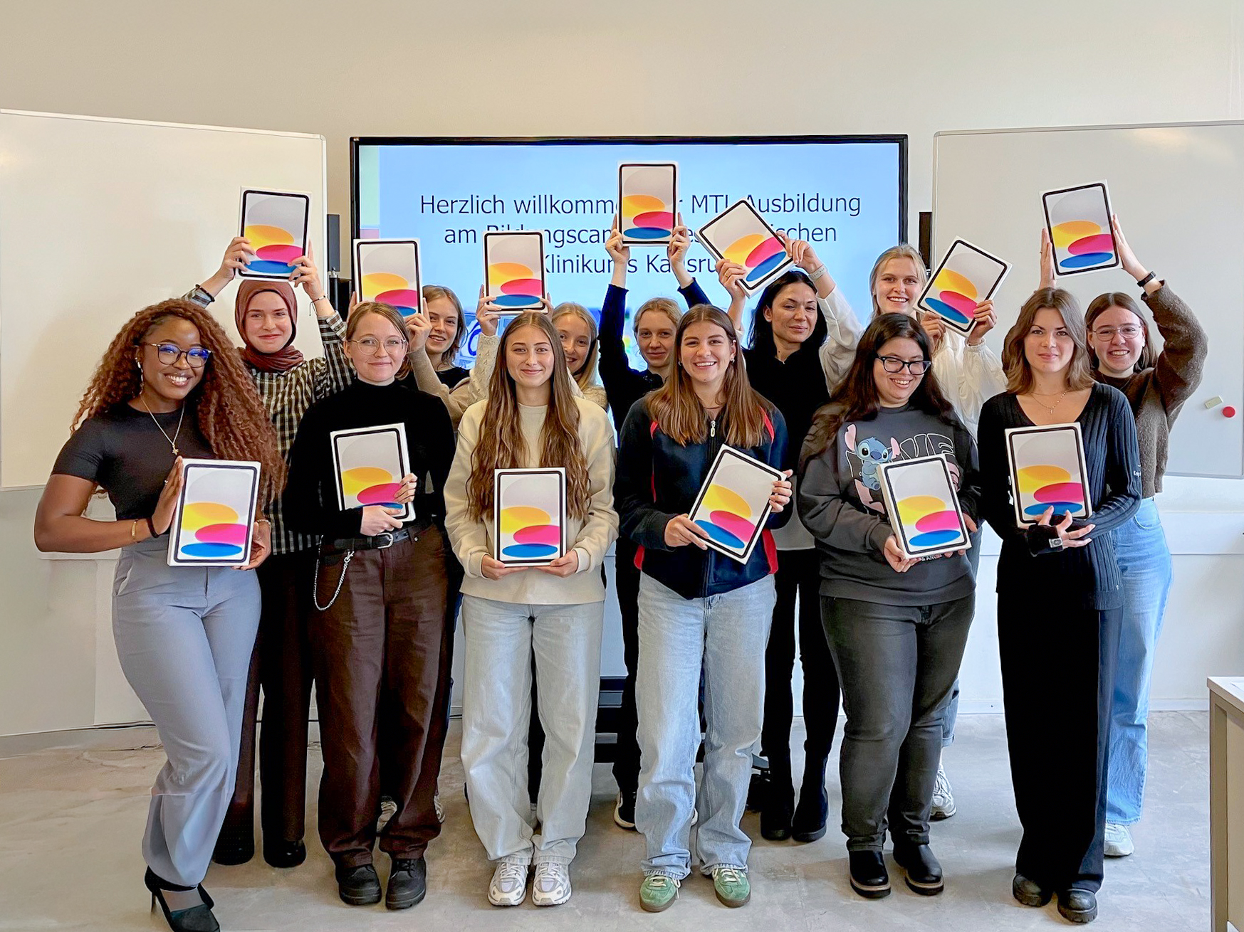 Mit Beginn des neuen Ausbildungsjahrs im Oktober hat das Städtische Klinikum Karlsruhe seine Digitalisierungsoffensive auch auf die Ausbildung am hauseigenen BildungsCampus ausgeweitet. Alle Auszubildenden der Kurse für Berufe im Pflege- und Funktionsdienst nutzen ab sofort iPads im Unterricht und beim Lernen zuhause.