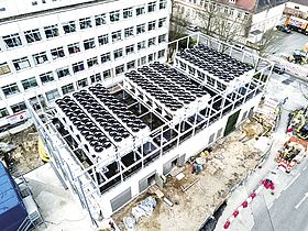 Ab dem 7. Juli wird der bisherige Eingang zu Haus S im Osten geschlossen und Anfang nächster Woche wird der Windfang vor Haus S abgebaut. Der Eingang zu Haus S ist dann nur noch von der Kußmaulstraße her möglich.