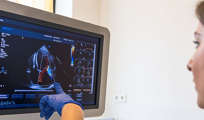 Wir führen jährlich über 10.000 Echokardiographien durch, hiervon mehr als 2.000 von der Speiseröhre aus sowie Stress-Echokardiographien und pharmakologische Stimulation mittels Dobutamin.